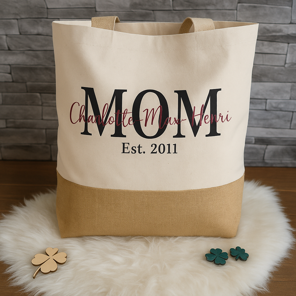 Ob „MOM“, „OMA“, „LIEBLINGSTANTE“, „FAMILY“ oder ein ganz anderer Wunsch – du entscheidest, was auf der Tasche stehen soll.